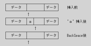 編集位置から文書先頭方向に1文字が削除された場合(BackSpace):