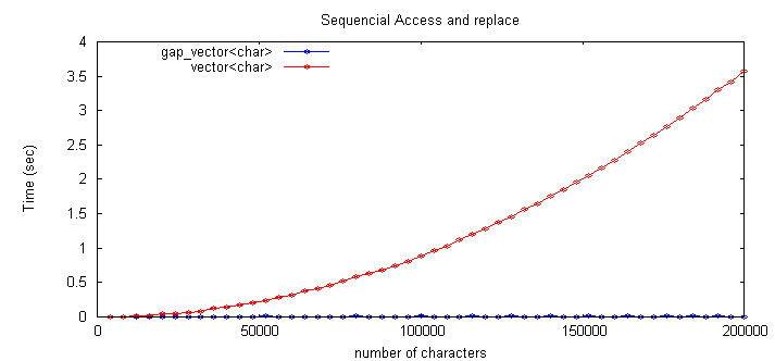 7文字進めて5文字挿入 vector<char> は O(N^2) の処理時間がかかるが、gap_vector<char> はO(N)
